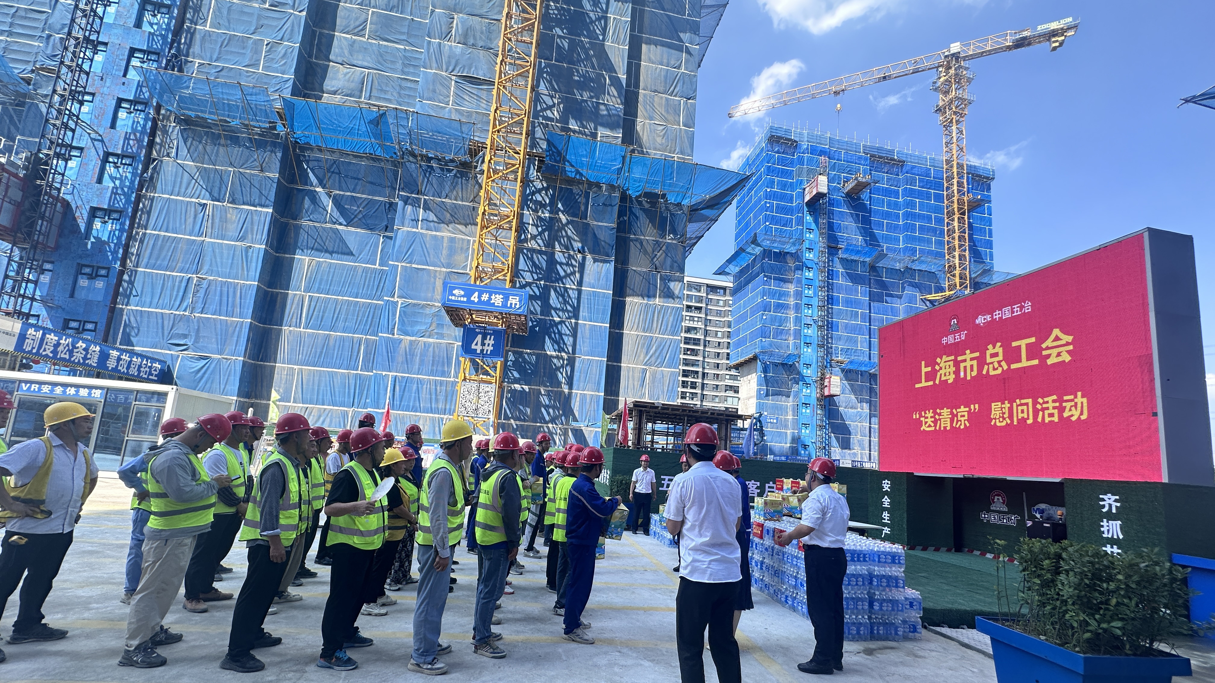 7月4日下午,上海市總工會黨組成員、經(jīng)審會主任莊勤一行赴中國五冶集團承建的嘉定安亭項目一線開展高溫慰問,為廣大一線建設(shè)者送上夏日清涼慰問品,五冶集團上海有限公司黨委副書記、工會主席周青平等陪同慰問。