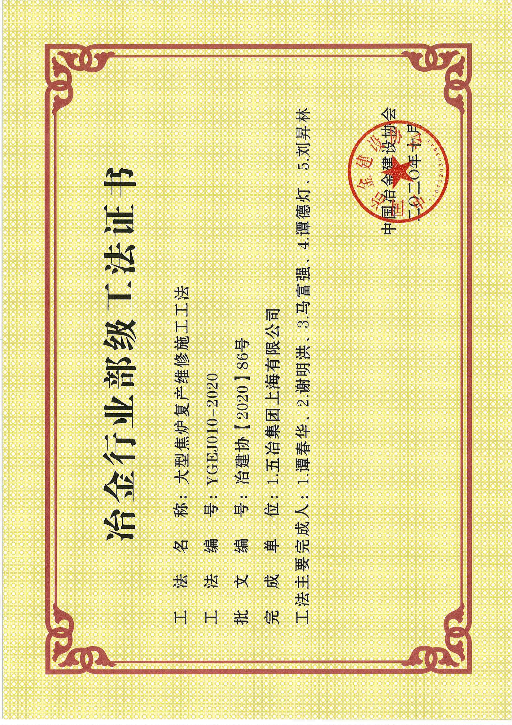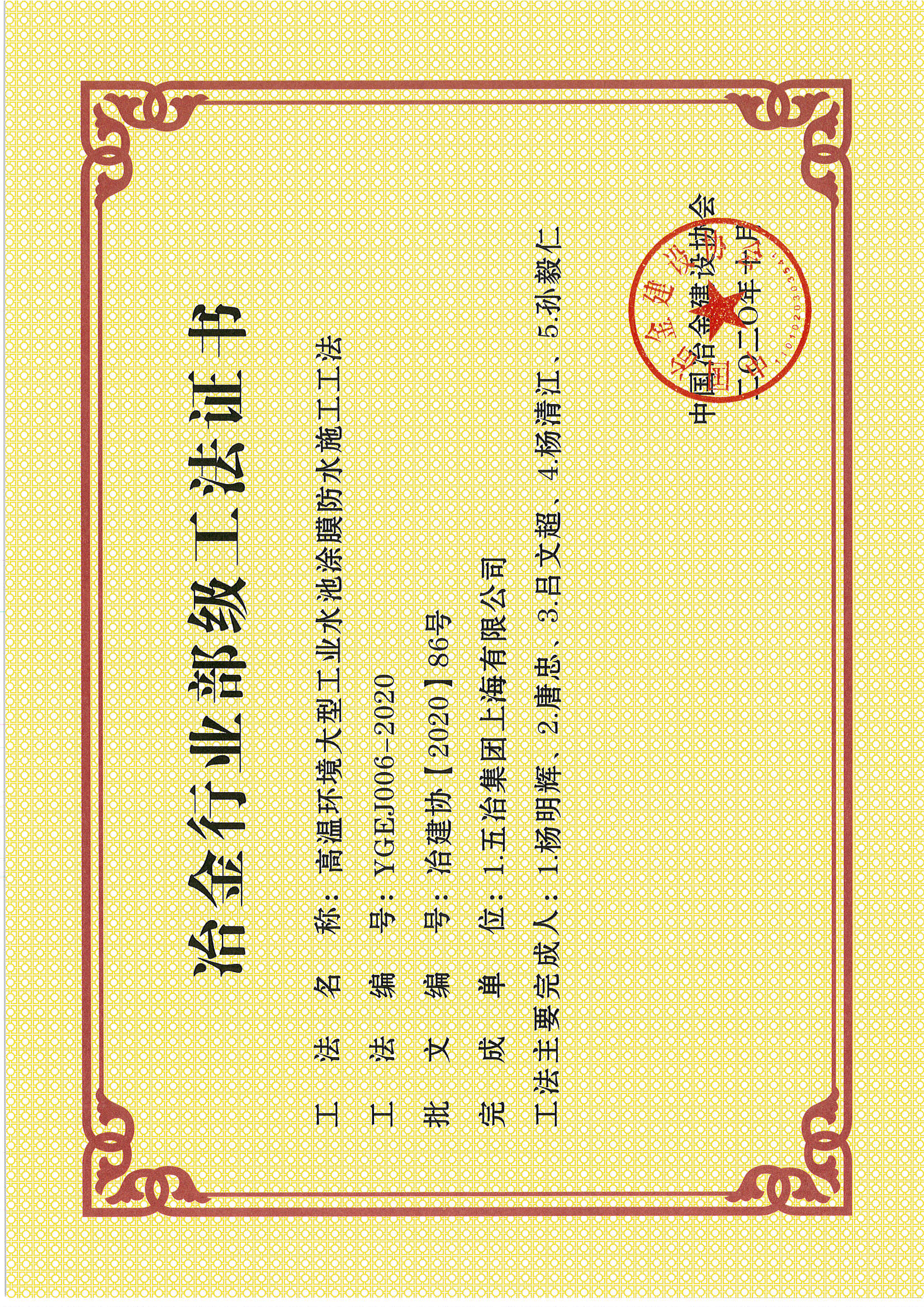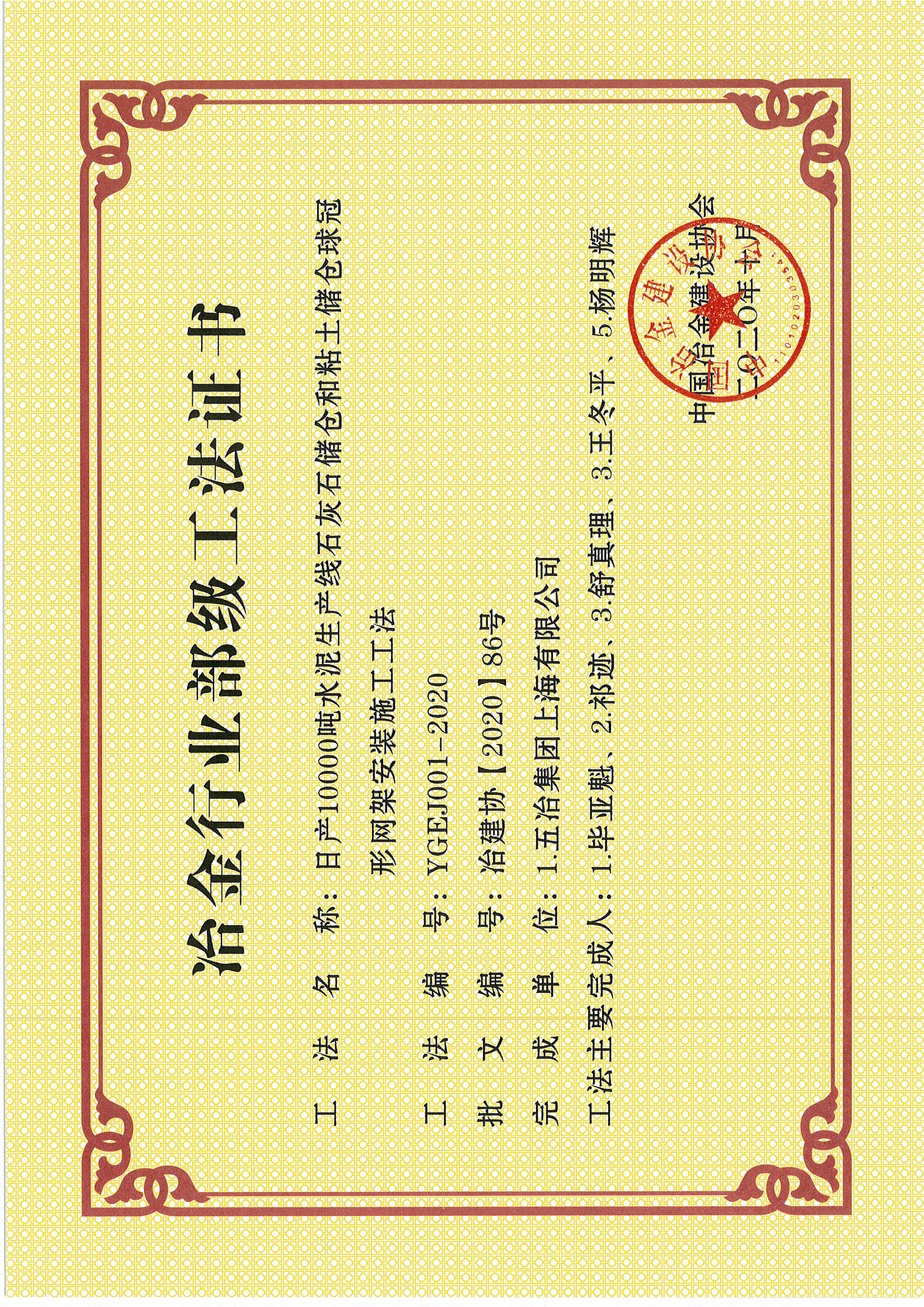 2020年部級(jí)工法