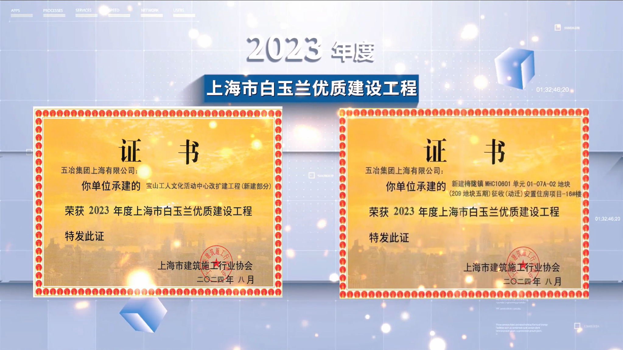 近日,上海市建筑施工行業(yè)協(xié)會(huì)公布2023年度上海市建設(shè)工程白玉蘭獎(jiǎng)(市優(yōu)質(zhì)工程)名單,公司承建的上海市大型保障性民生工程——閔行梅隴動(dòng)遷安置房項(xiàng)目和上海市高品質(zhì)職工文化陣地——寶山區(qū)工人文化活動(dòng)中心改擴(kuò)建工程榜上有名。